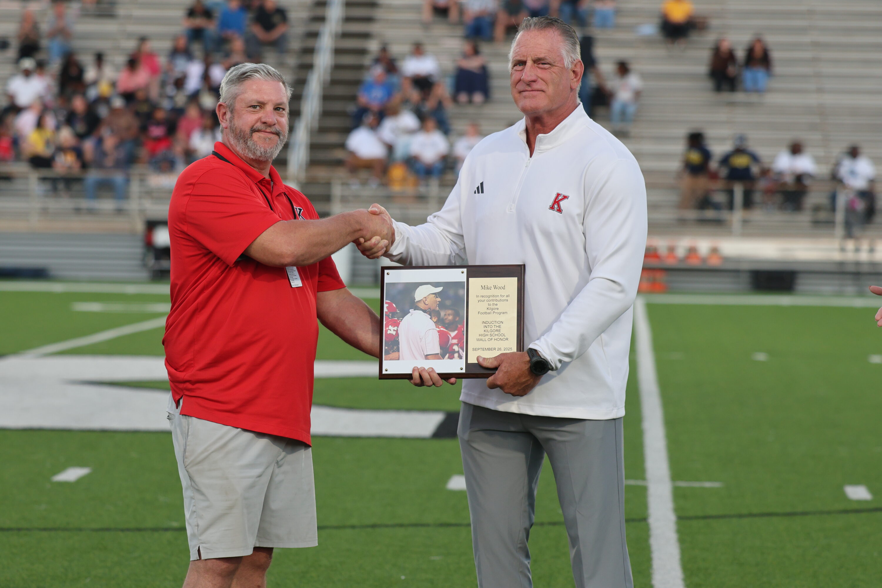 Kilgore Athletic Director Mike Wood, the head football coach for 11 seasons, was inducted into Kilgore’s Wall of Honor and the 2005 graduating class was also recognized prior to the game.