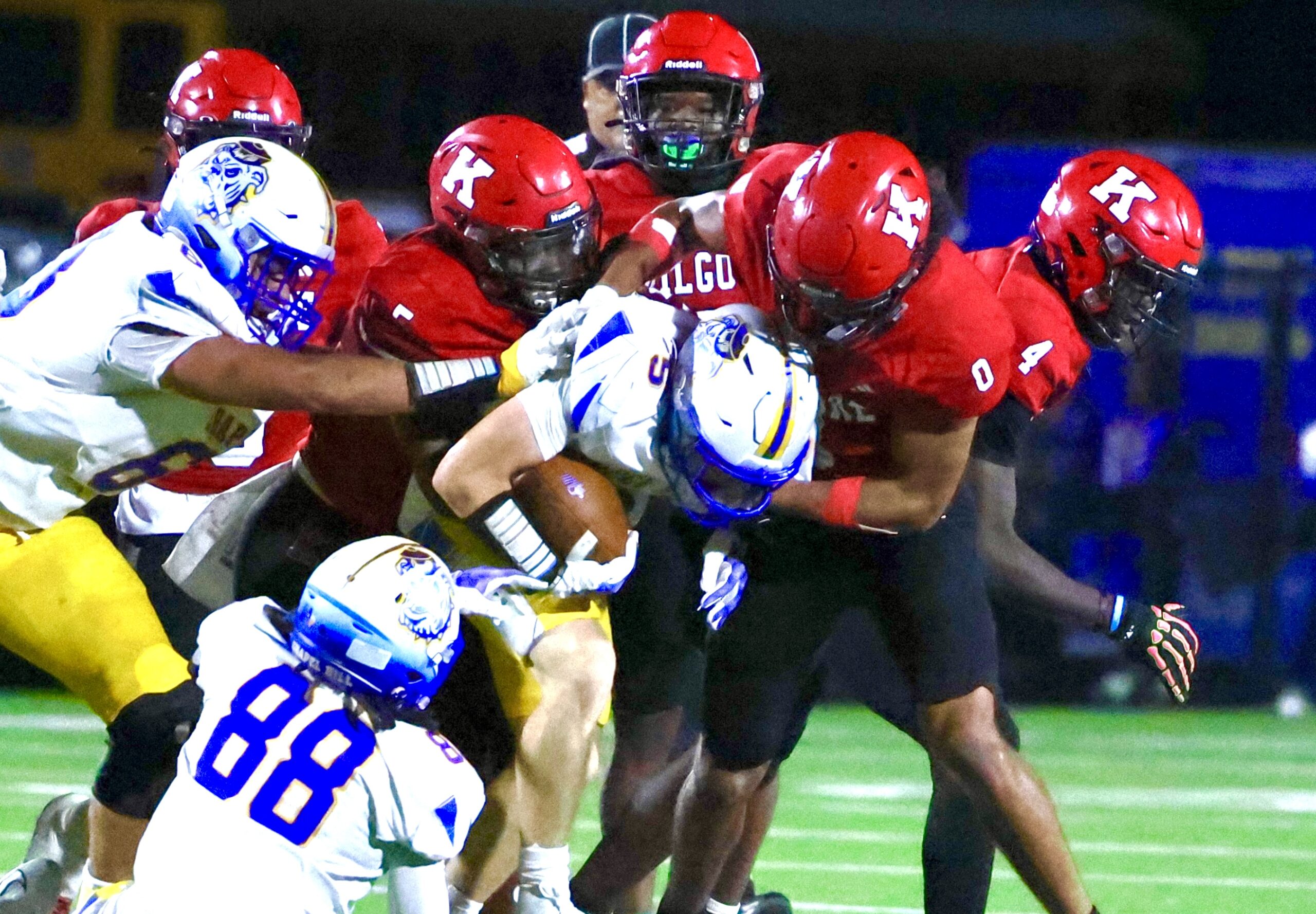 The visiting ’Dogs converted two fourth downs and needed a holding penalty against Kilgore to convert another (fourth down) inside the red zone at the Ragin’ Red’s 5-yard line. It took four plays from there, but Castaneda got in.