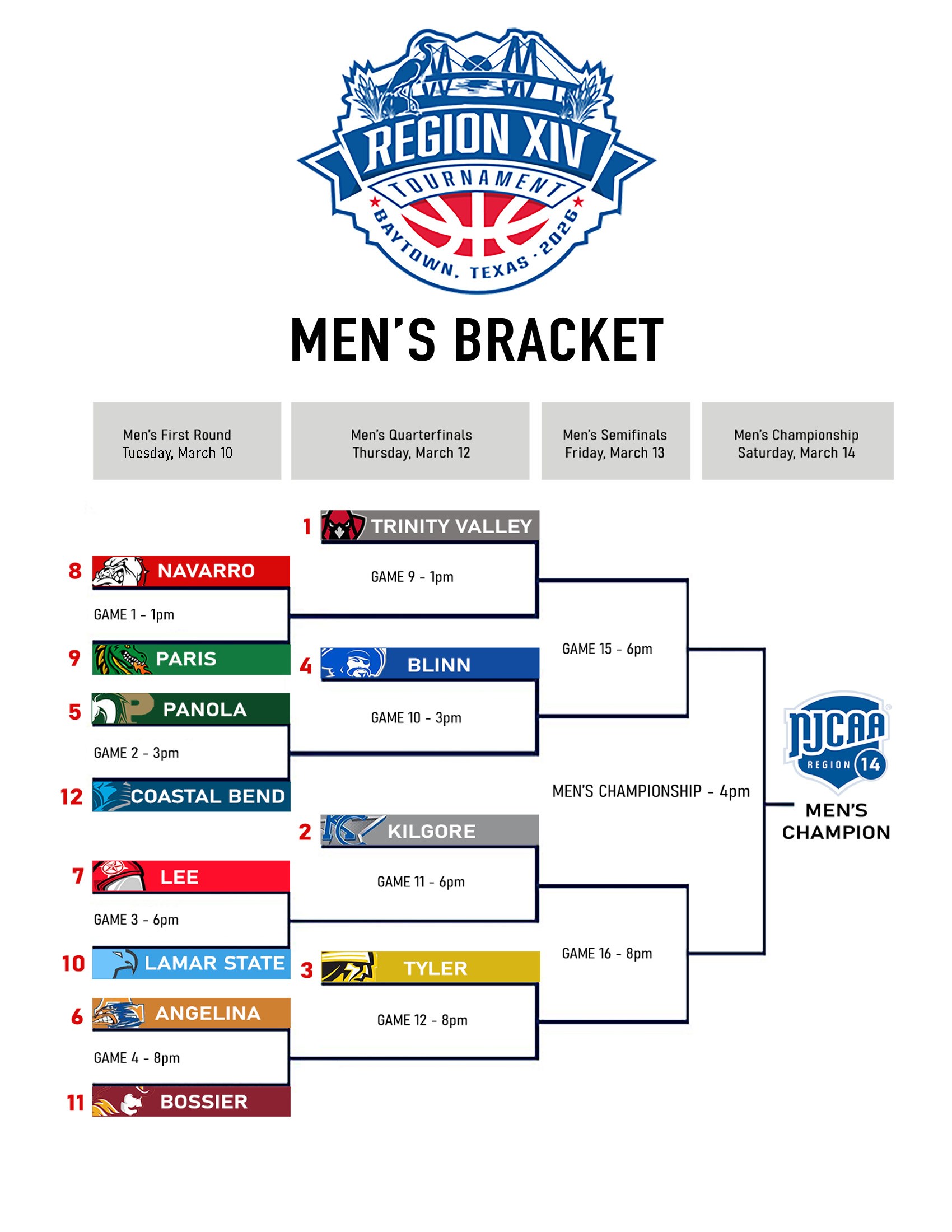 All men’s games can be seen online, live streaming, right here: 2026 Region 14 Men’s Basketball Tournament – TSBN Sports.