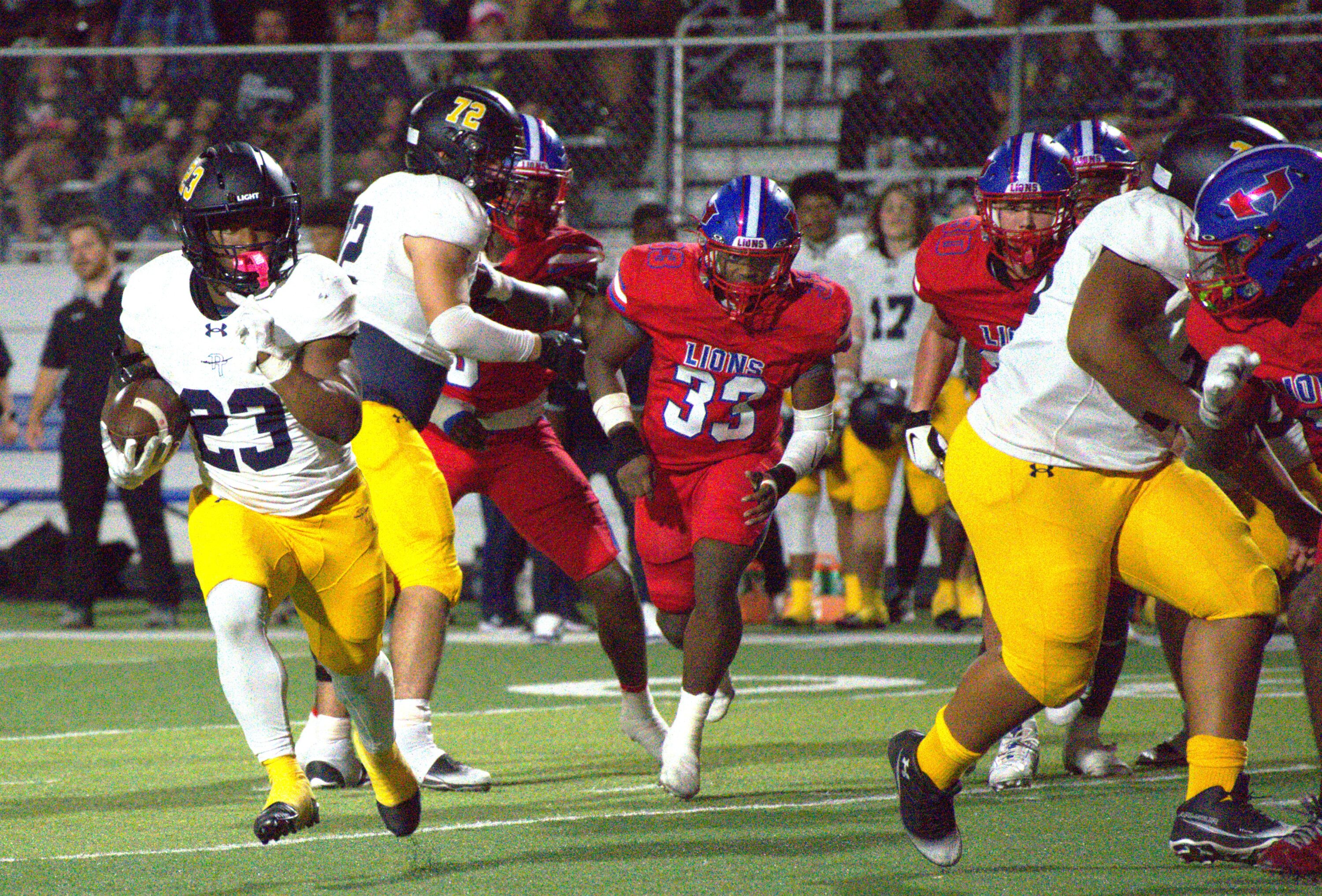 Big running back Jayden Bishop scored for Henderson on a 39-yard run on what was supposed to be a fourth-down conversion attempt that went much better for the Lions, and got them within six points (27-21).