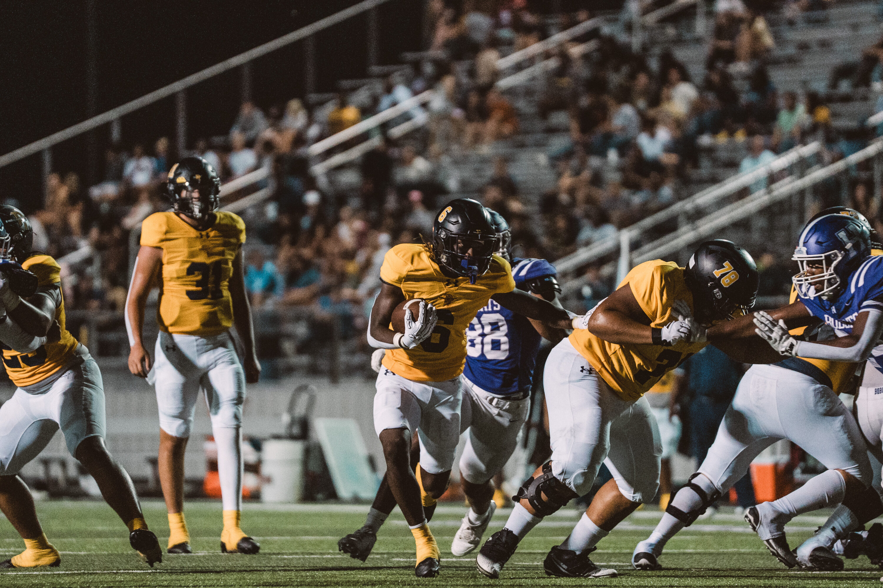 It wouldn’t stay that way long, and Mabank didn’t do it. Pirates kicker Julian Ibarra made it 23-0 on a 30-yard field goal, and Attaway would score on an 11-yard run. That was a bit of an adventure; an off-snap on another field goal attempt was picked up off the Pirate Stadium turf by Bosston Johnson, who got into the end zone, but PT and Mabank were both flagged. The down was replayed, and Attaway scored.